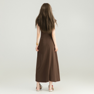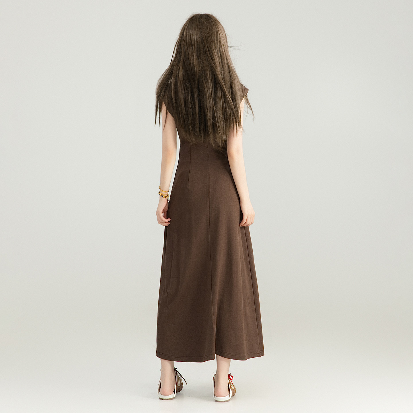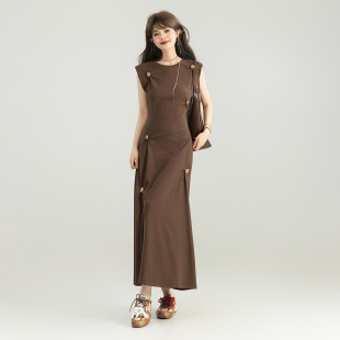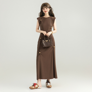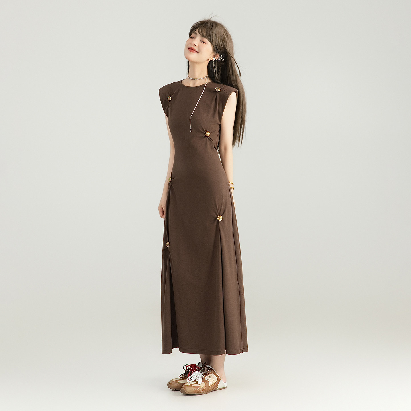 气质御姐收腰显瘦垫肩背心长裙 连衣裙夏季 KEIKO 复古花饰扭结无袖