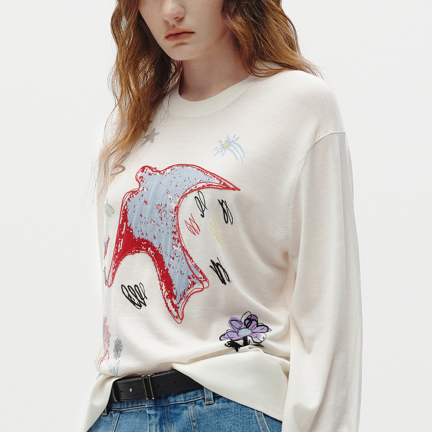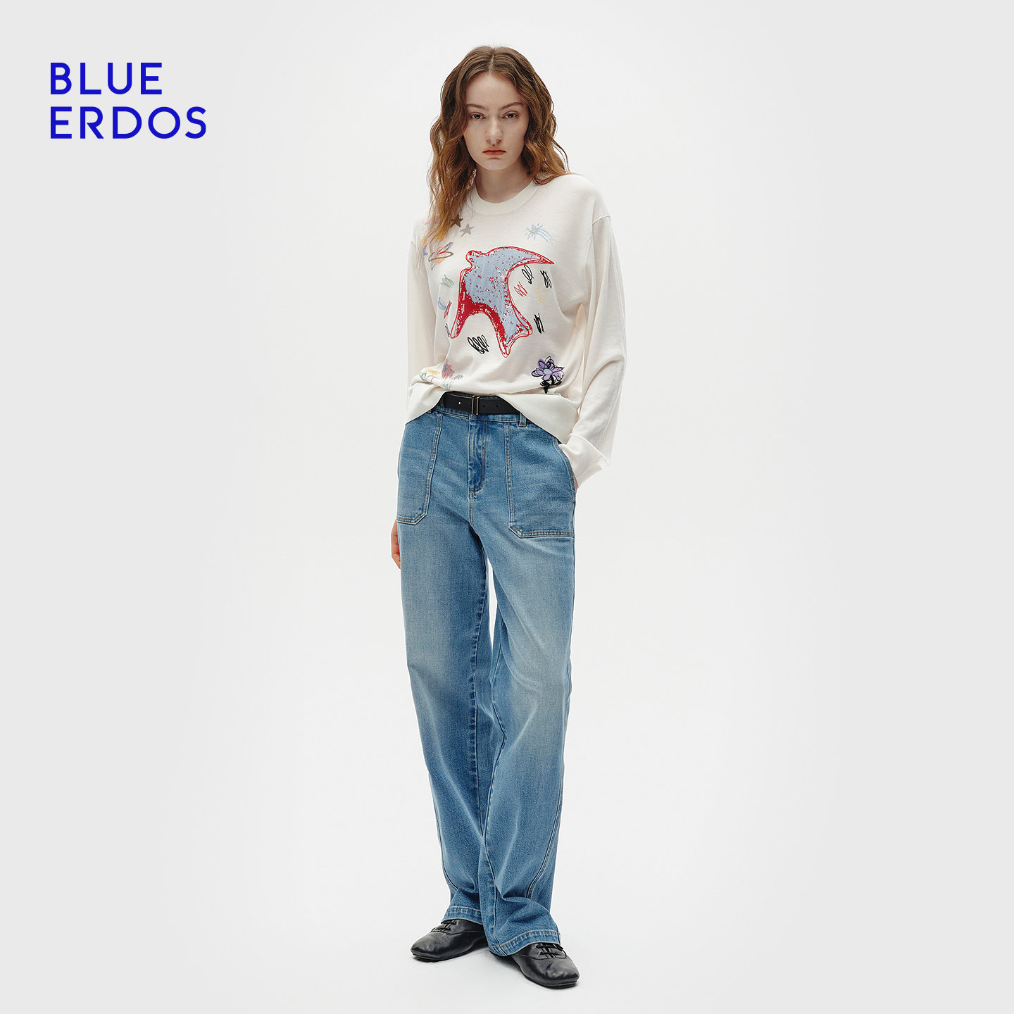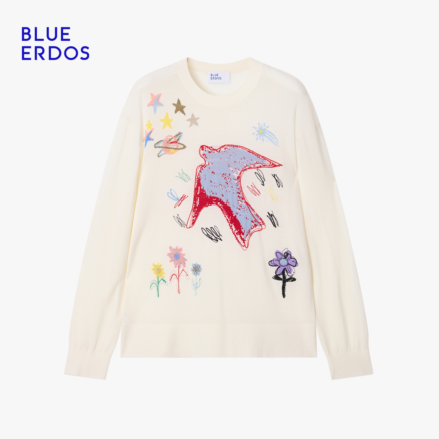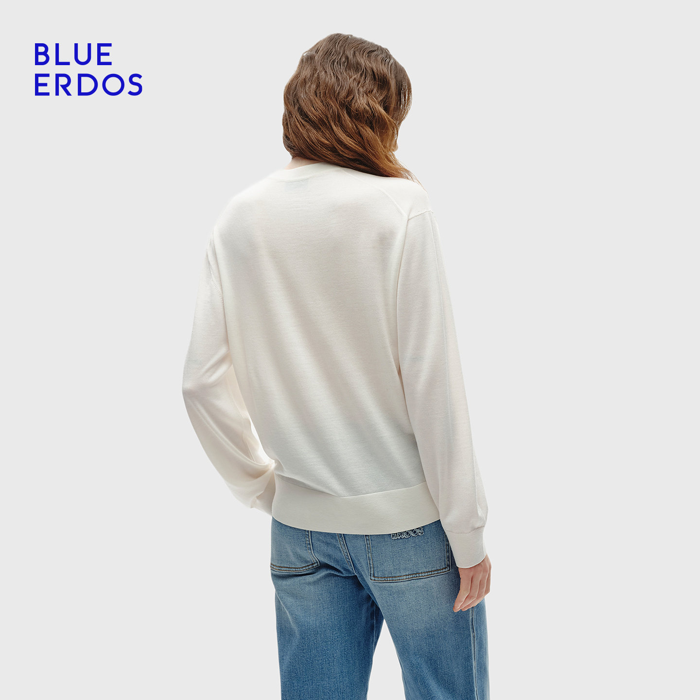 ERDOS 简约精纺圆领刺绣提花女套衫 春季 时尚 B256D0030 新品 BLUE