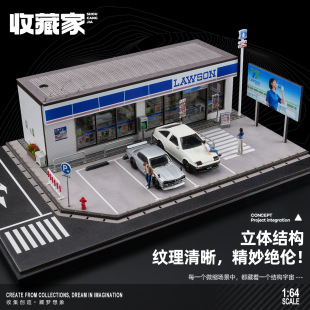 街景 64收藏家微缩场景罗森便利店模型711藤原豆腐汽修厂日式