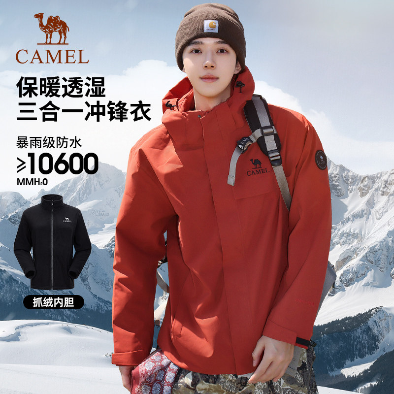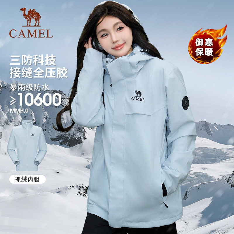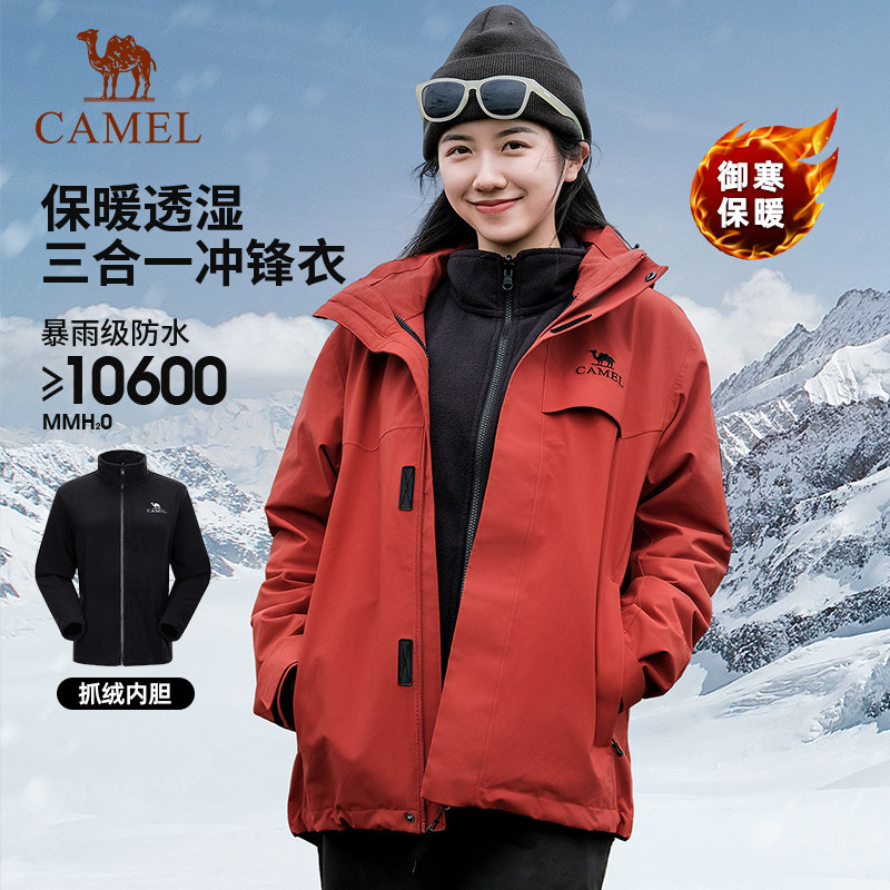 骆驼远山蓝三合一冲锋衣男2025年新款 防风防水旅行登山服两件套女