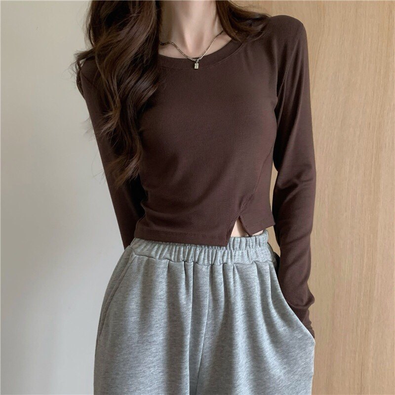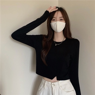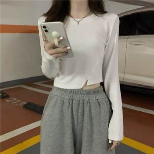 t恤女团高腰跳舞jazz服装 长袖 爵士舞演出服 韩舞蹈小心机短款 秋季