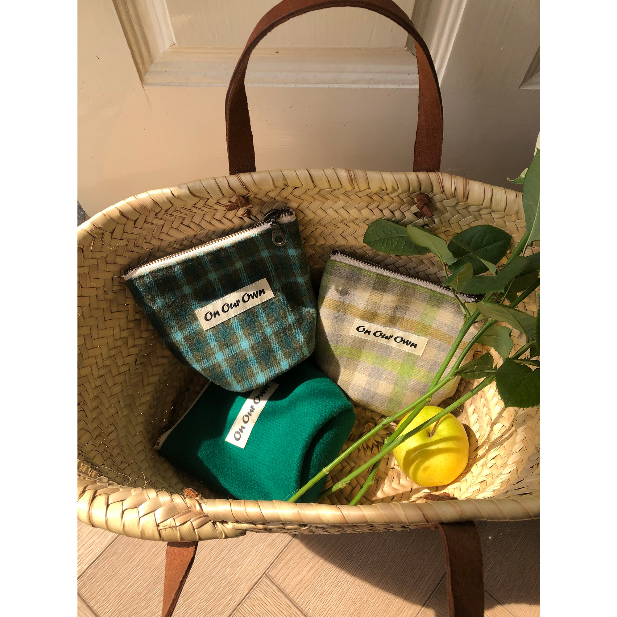 21FW Own 原创 格纹羊毛圆底收纳包 厚实柔软 拉链收纳袋 Our
