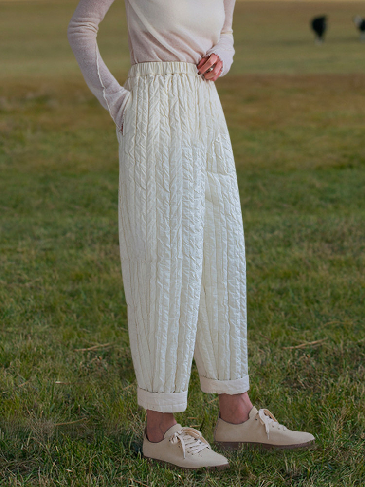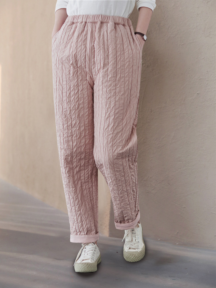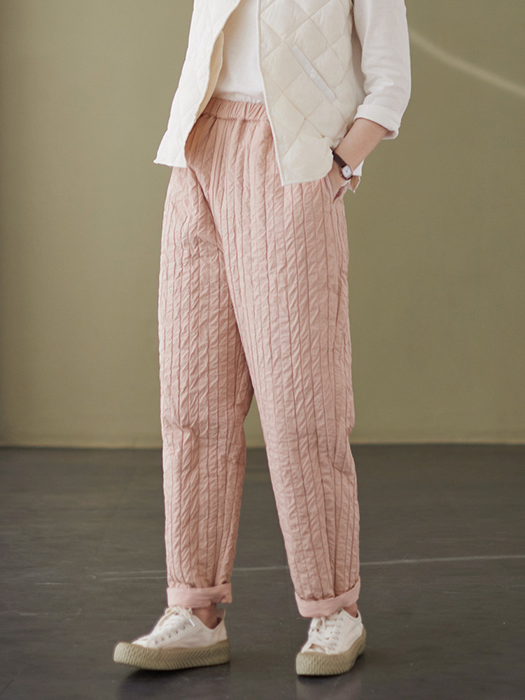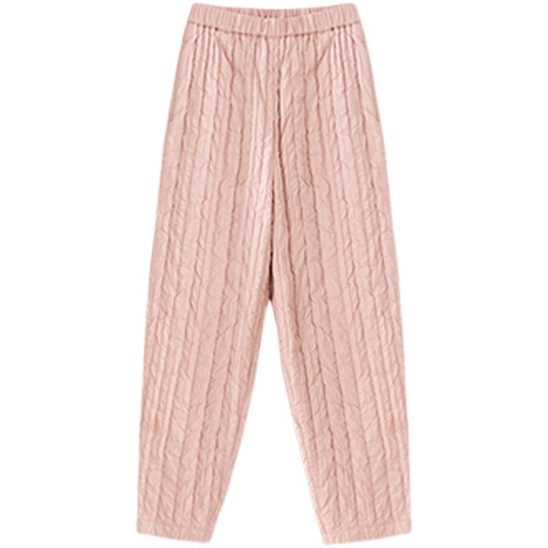 知笔墨2021年冬文艺粉色双层绉布肌理压褶95白鹅绒保暖显瘦羽绒裤