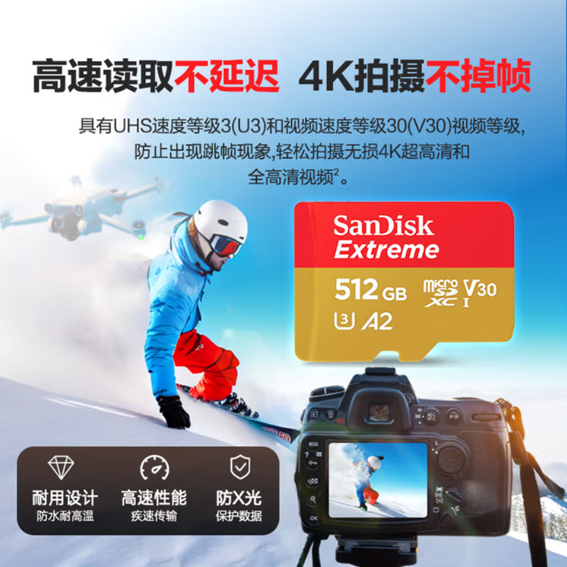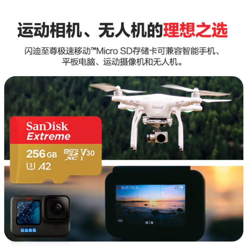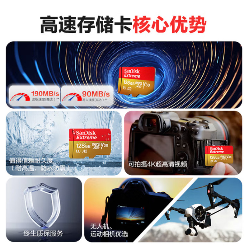 128g 闪迪高速TF卡64g 256g大疆无人机相机内存卡存储卡 自营