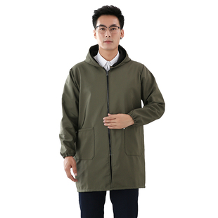 加绒罩衣加厚外套男女拉链中长款 围裙保暖工作服 厨房防水防油长袖