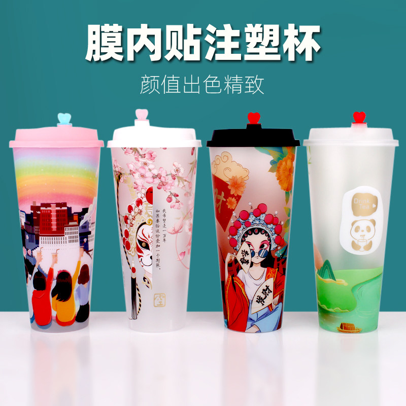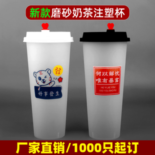 90口径一次性奶茶杯500 700ml磨砂饮料注塑杯子商用带盖定制logo