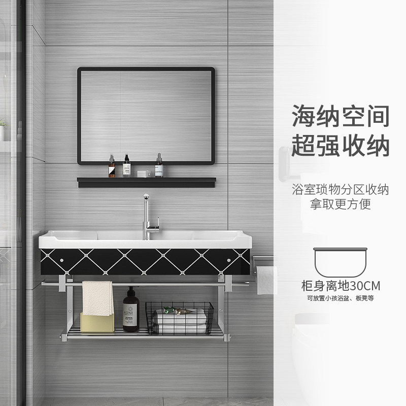 不锈钢组合轻奢小户阳台洗漱洗手台盆面池一体洗脸盆浴室柜洗手盆