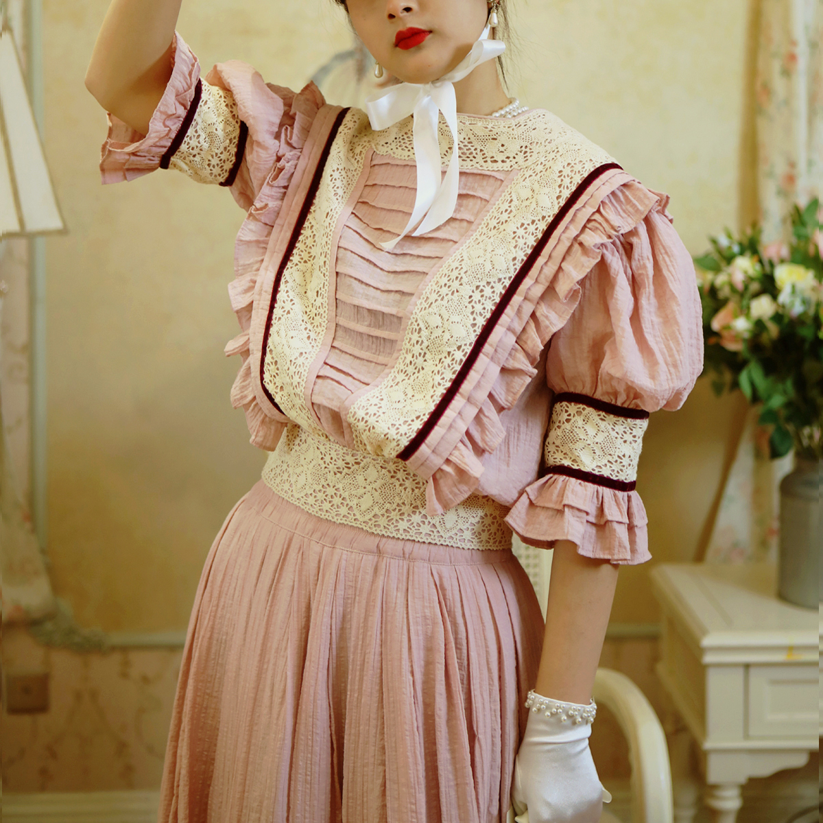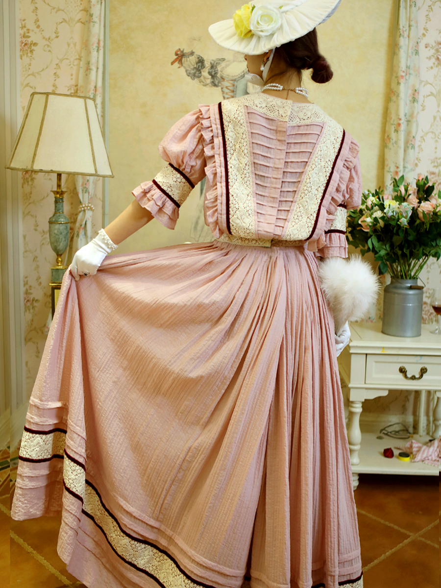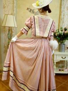 曼塔玫瑰 高定 Garden 爱德华时期粉色古董茶歇裙定制 Lace