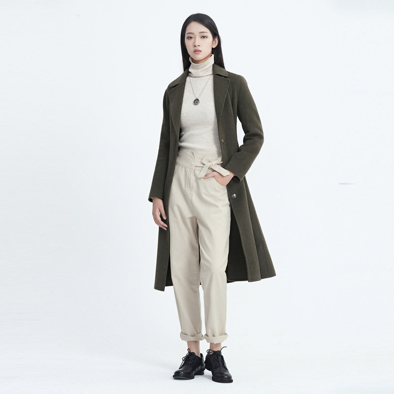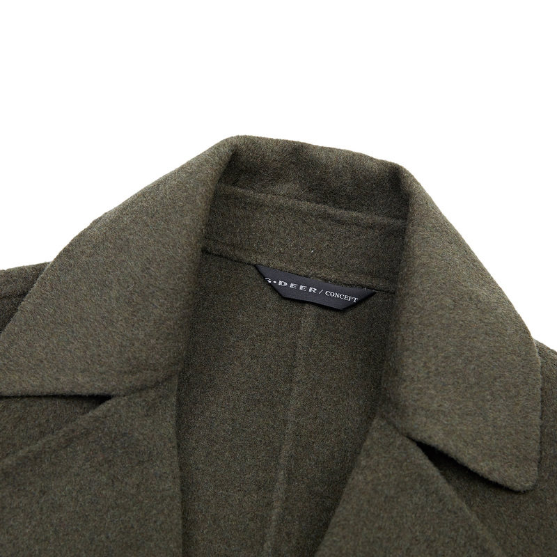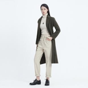 翻领收腰拼接长款 时尚 毛呢大衣外套S20461803 冬装 sdeer圣迪奥女装