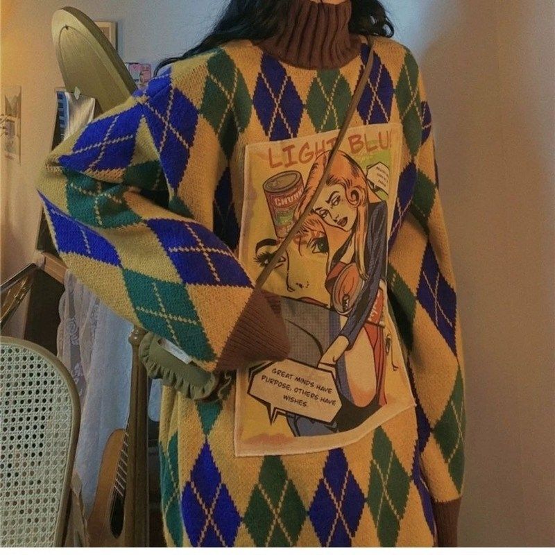 上衣外套 「粗棒针织高领毛衣」宽松开衫 INSstudios 国潮情侣美式