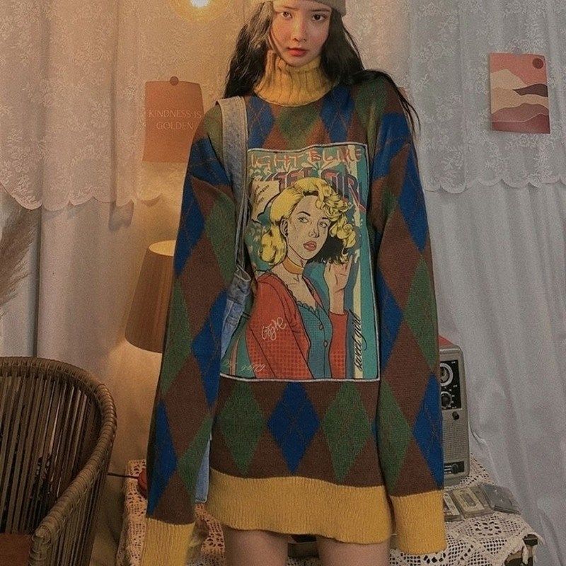 女 加厚情侣复古条纹针织衫 王橹杰同款 BJHG不计后果新年毛衣男冬季