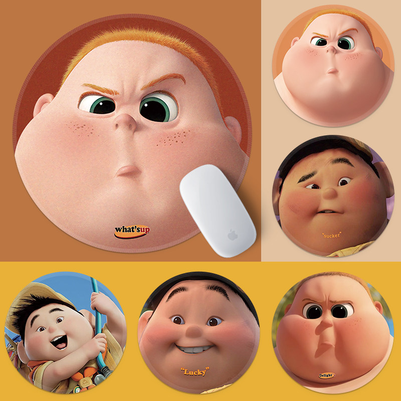 愤怒 胖子创意办公小号鼠标垫圆形女宿舍家用加厚护腕锁边桌垫罗素表情包搞怪飞屋环游记定制防滑水洗胶垫