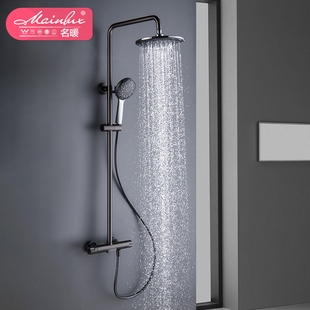 名暖奶油白色恒温智能控制增压淋浴花洒枪灰黄铜拉丝金沐浴器套装