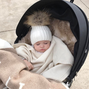 婴儿帽子女可爱超萌3 12个月秋冬新生儿童宝宝兔绒毛线针织帽保暖