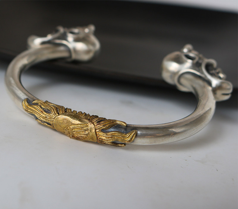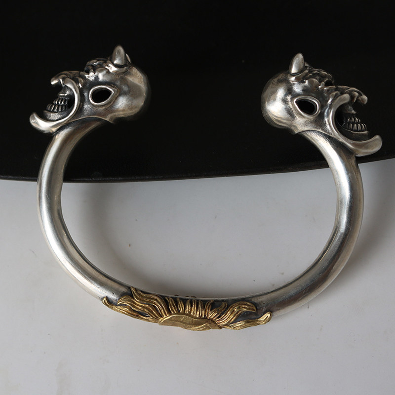 太阳纹双头老天使纯银手镯个性 匠艺手工定制高山隆n2n noname