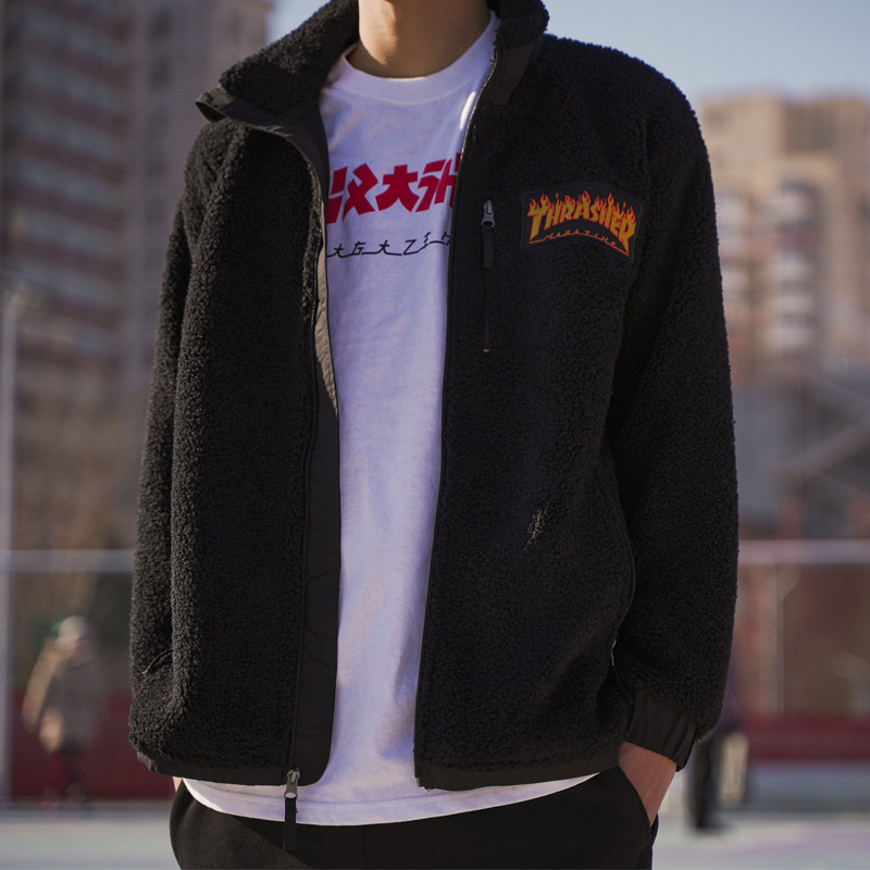 摇粒绒夹克 款 FLEECE 经典 火焰滑板 JACKET THRASHER