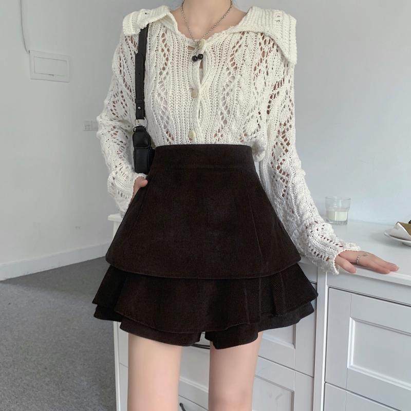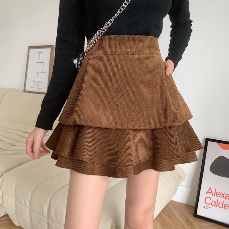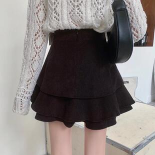 超高腰百褶裙裤 黑色显瘦遮胯蓬蓬短裙 女春秋荷叶边a字半身裙大码