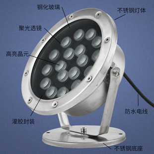 水底灯LED防水24v不锈钢七彩喷泉灯水下灯水池景观灯假山鱼池射灯