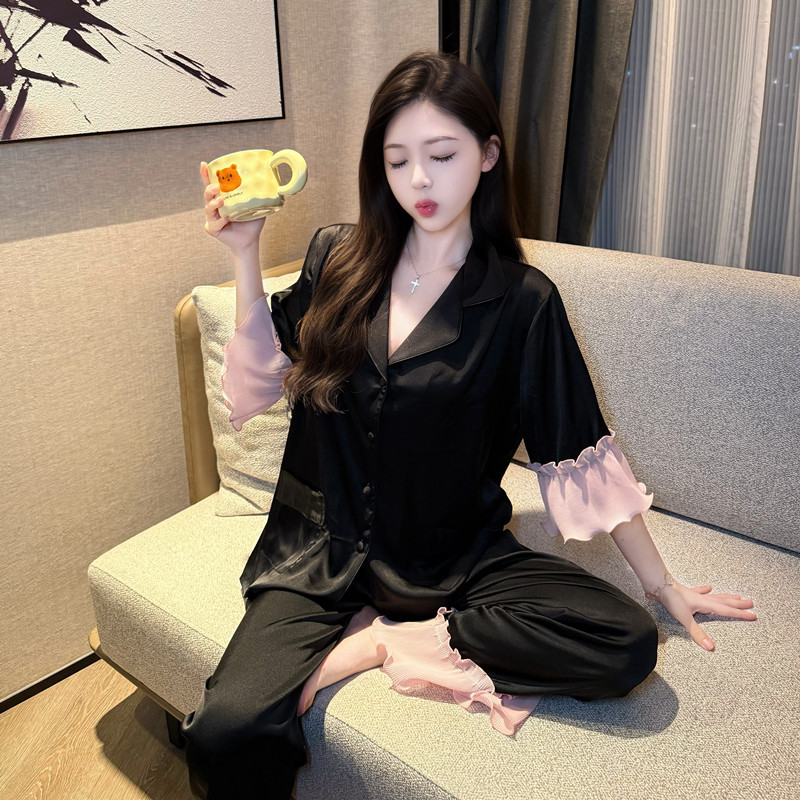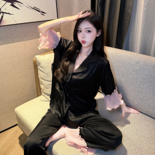 冰丝短袖 2026新款 长裤 高级感少女漂亮时尚 睡衣女款 家居服套装 夏季