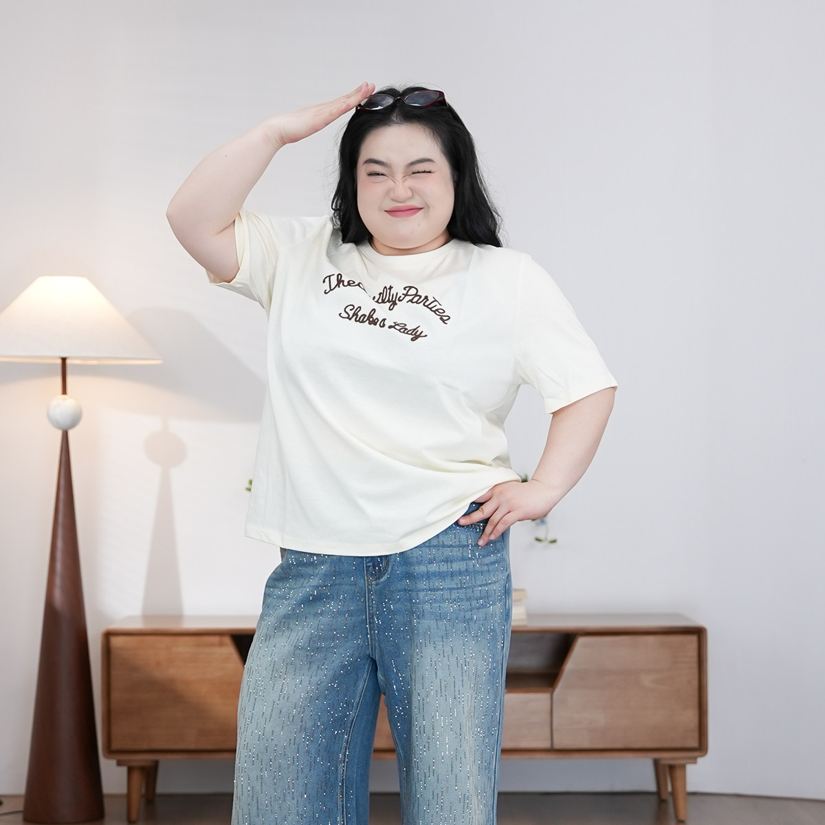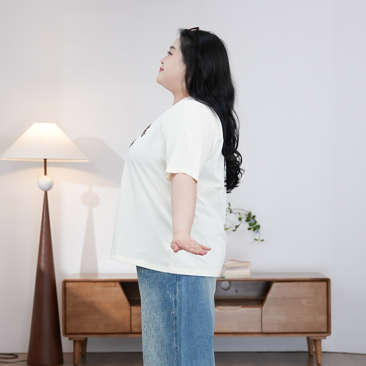 胖MM显瘦新款 大码 百搭清新休闲基础T恤2127 刺绣字母 福饮沸别