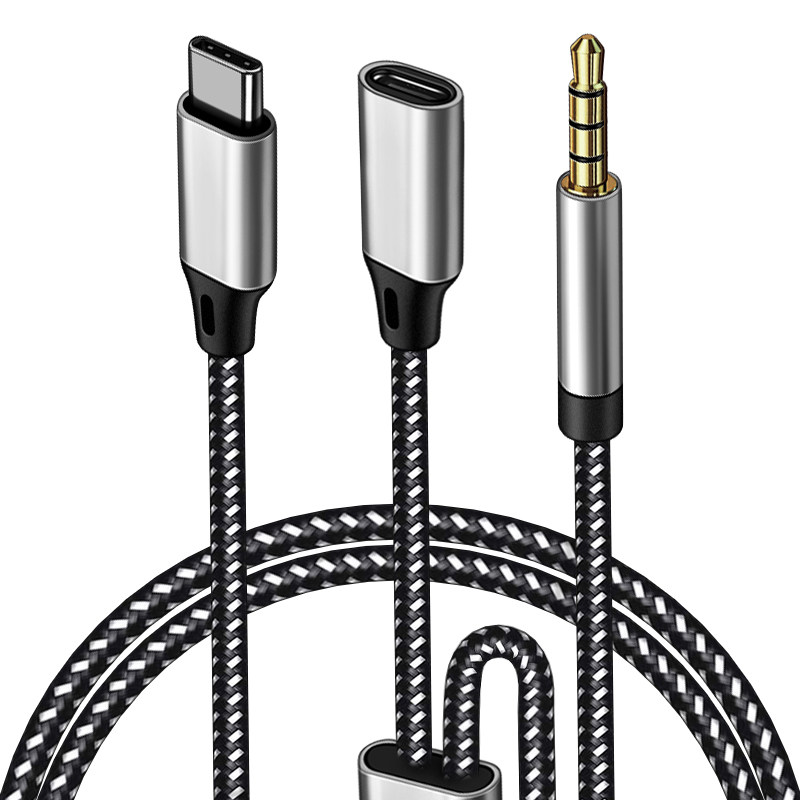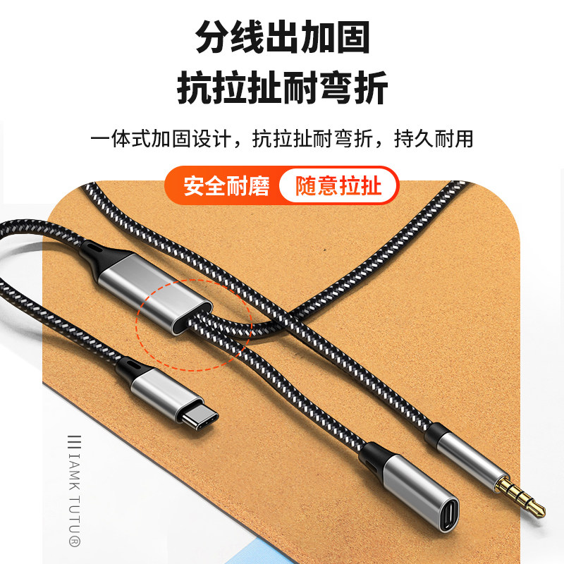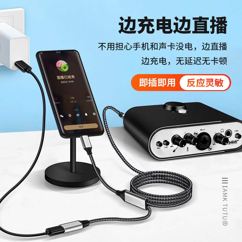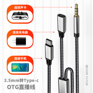适用于vivo手机Y200连接3.5mm声卡边直播边充电typec一拖二转接线