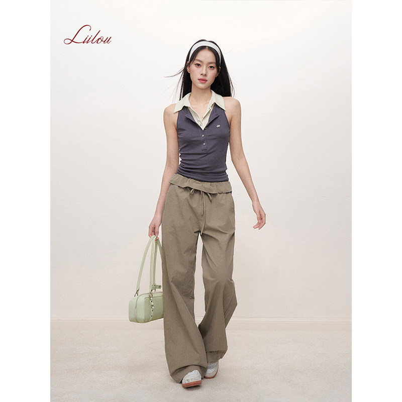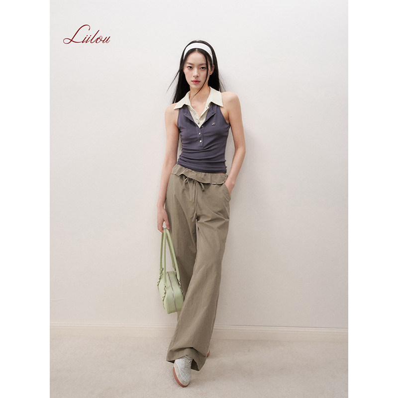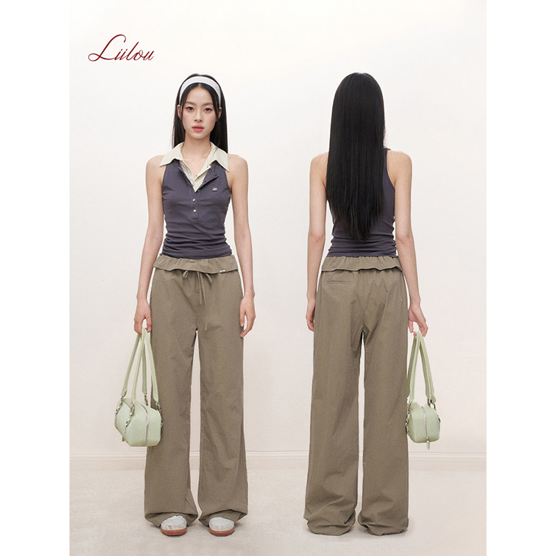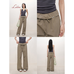 裤 姚晓棠同款 系带蝴蝶结休闲直筒工装 翻折荷叶边 Liilou