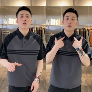 潮流时尚 夏季 男士 短袖 高级感宽松百搭休闲T恤 简约插肩条纹Polo衫