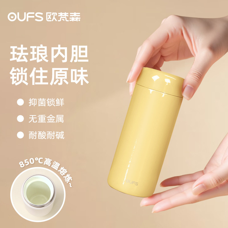 OUFS欧梵森保温杯女珐琅内胆钛杯迷你口袋水杯小巧便携杯子高颜值