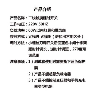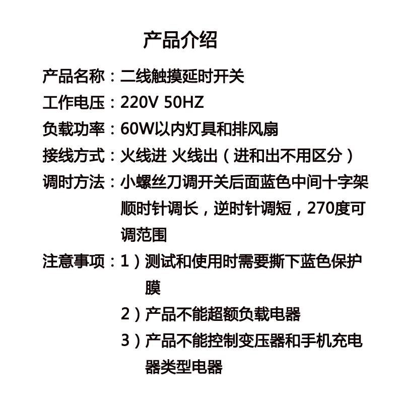 单控排风扇灯具新款 二线触摸延时感应开关1秒t 5分钟可调86型暗装
