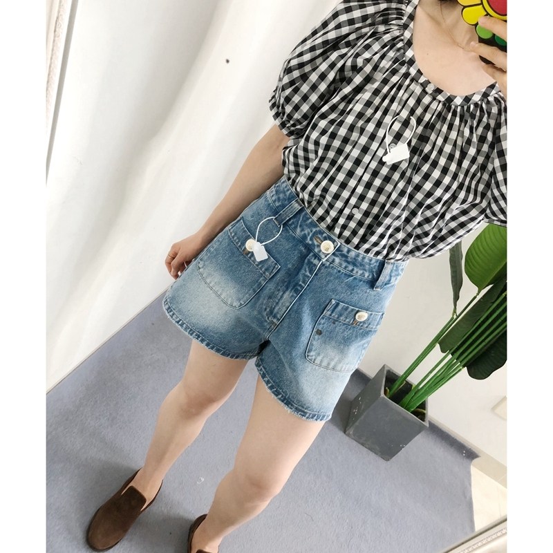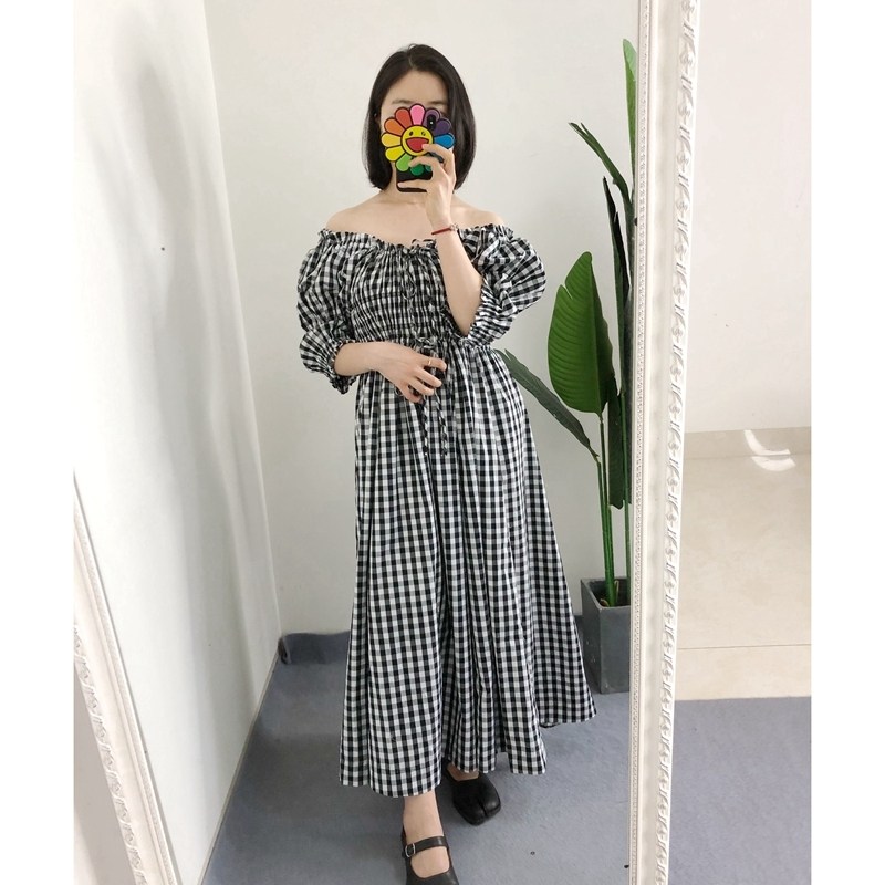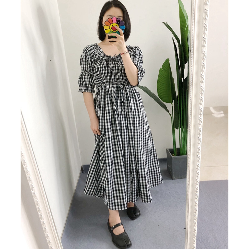 田园格纹印花连衣裙法式 原标买手店doen 泡泡袖 短袖 断码 衬衫 折扣