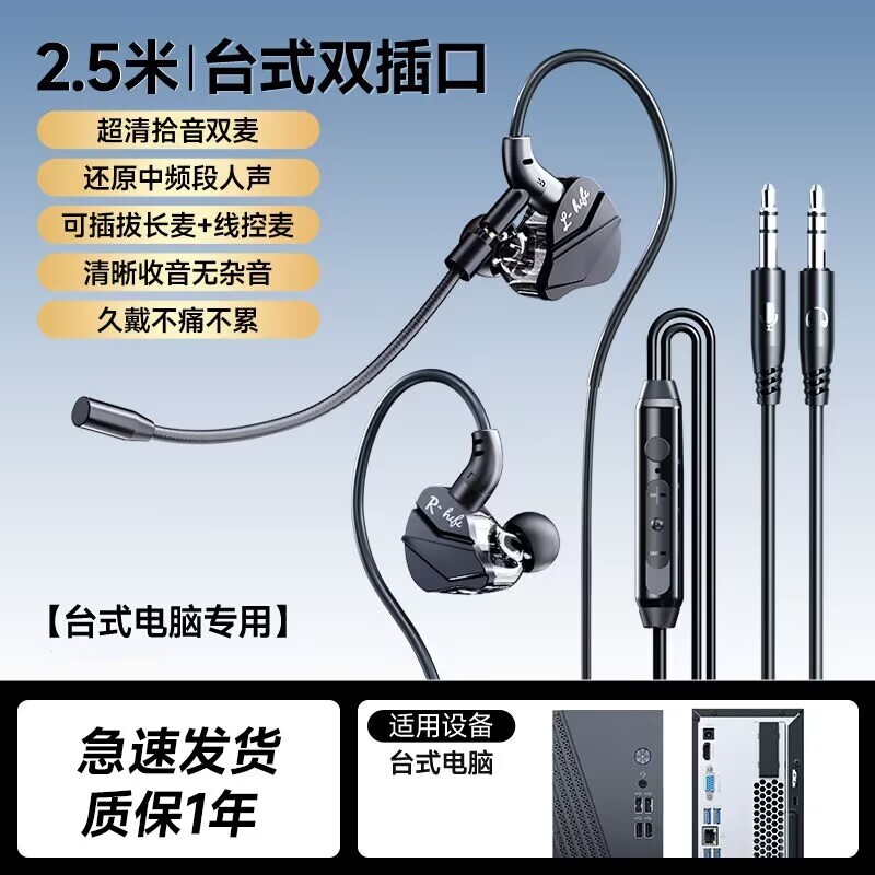 耳机麦克风二合一入耳式 电脑带麦话筒 有线三角洲电竞游戏专用台式