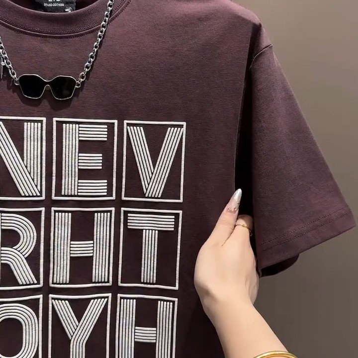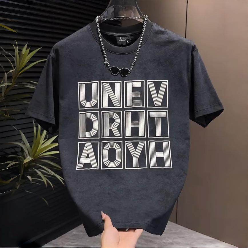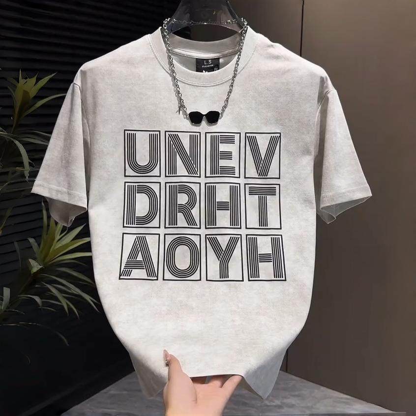 宽松百搭休闲情侣半袖 夏季 简约时尚 T恤男士 潮流扎染字母圆领短袖