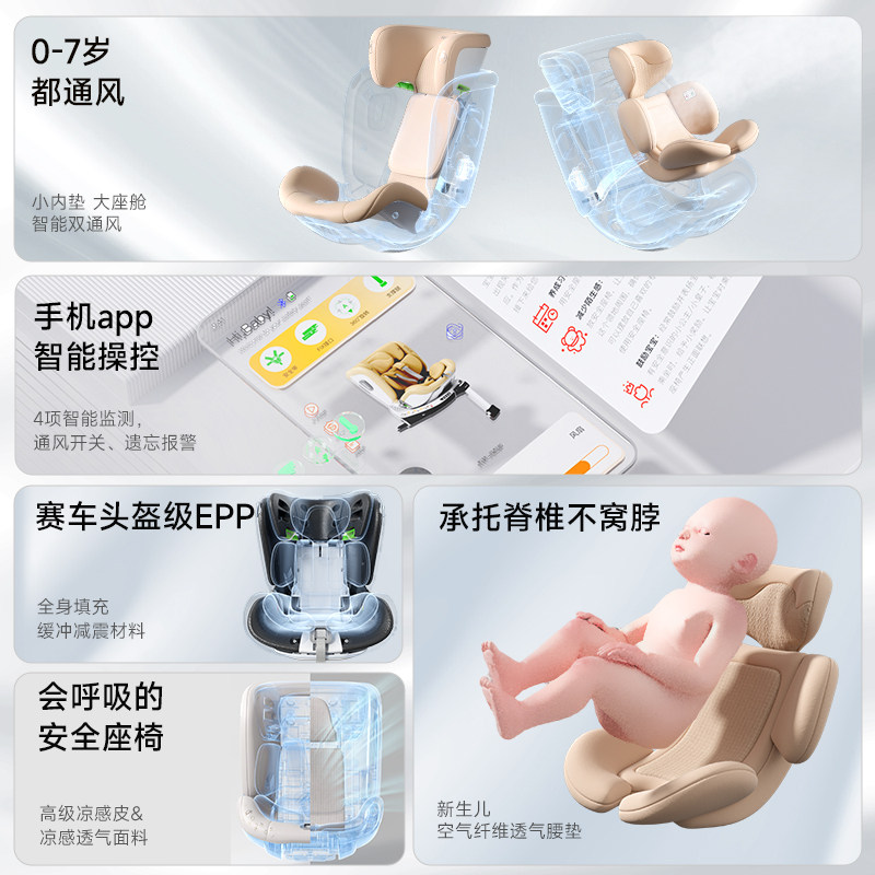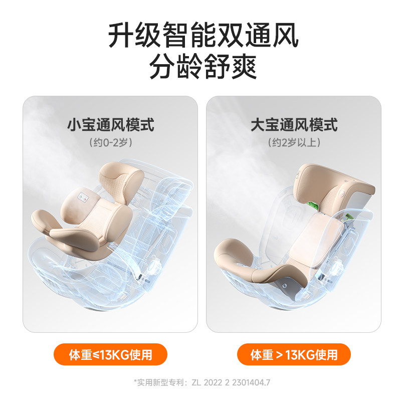 智能通风儿童安全座椅0 welldon惠尔顿智转2PRO 7岁 新国标
