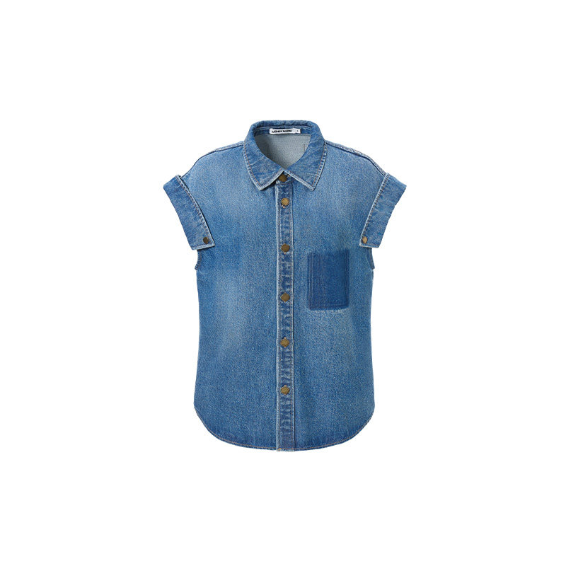 WANG 女宽松衬衣夏新款 白标系列 衬衫 上衣 解构牛仔无袖 LEDIM