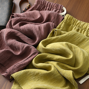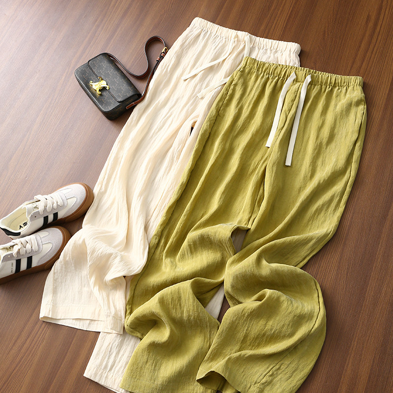女 纯色褶皱雾面天丝砂洗松紧抽绳高腰阔腿裤 淘么淘柔软 呼吸裤