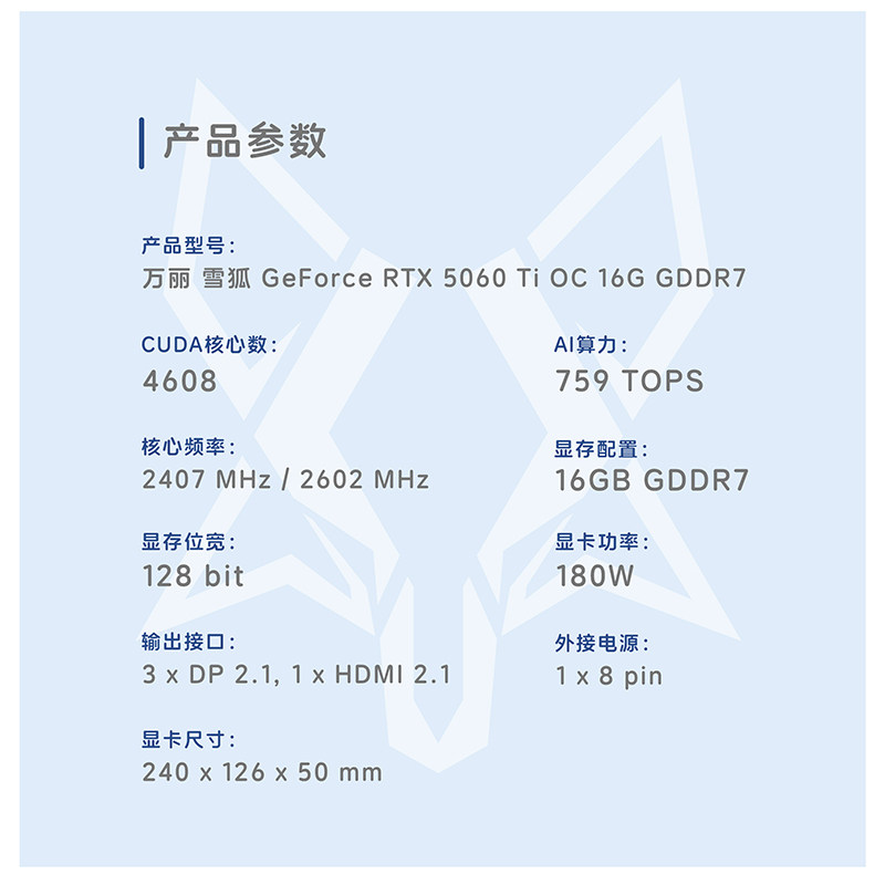 16GB雪狐台式 万丽GeForce 5060Ti 电脑主机独立显卡英伟达 RTX