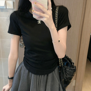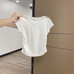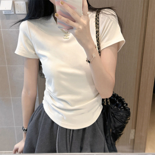 圆领褶皱内搭修身 2026新款 短上衣 t恤女夏季 正肩收腰辣妹白色短袖