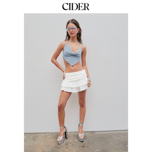 CIDERmiu系褶皱碎花蕾丝层叠迷你芭蕾风蛋糕裙短裙裤 1036415