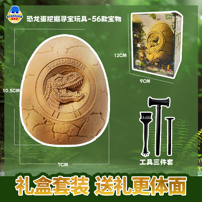 恐龙蛋化石考古挖掘玩具男孩挖宝石石膏寻宝儿童挖宝藏玩具盲盒