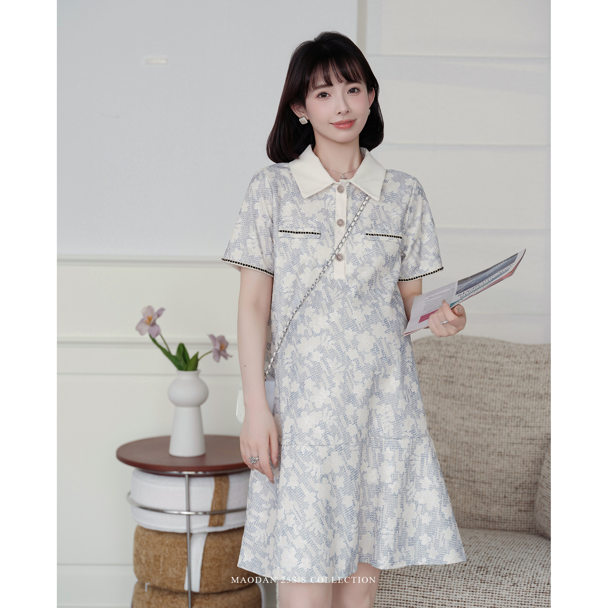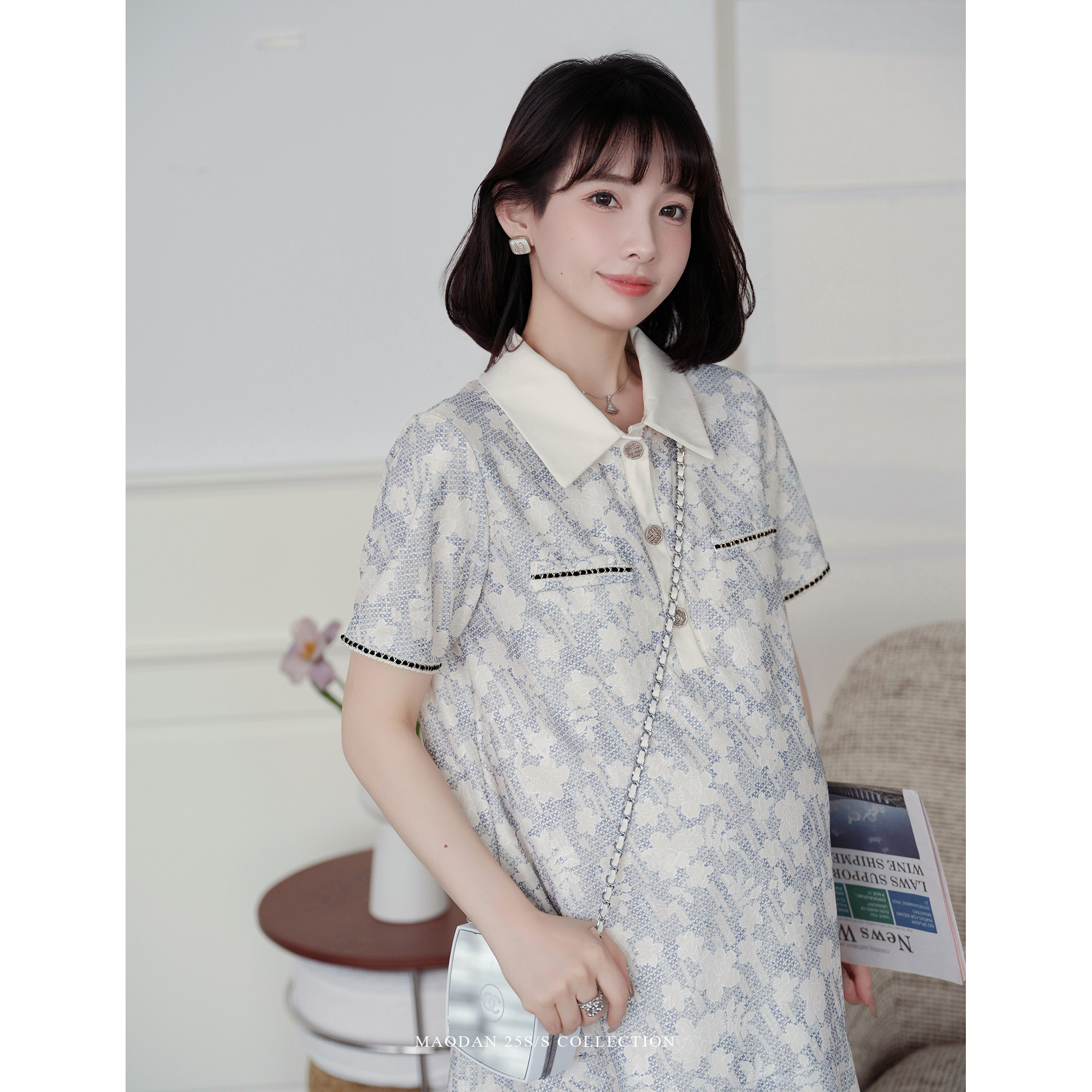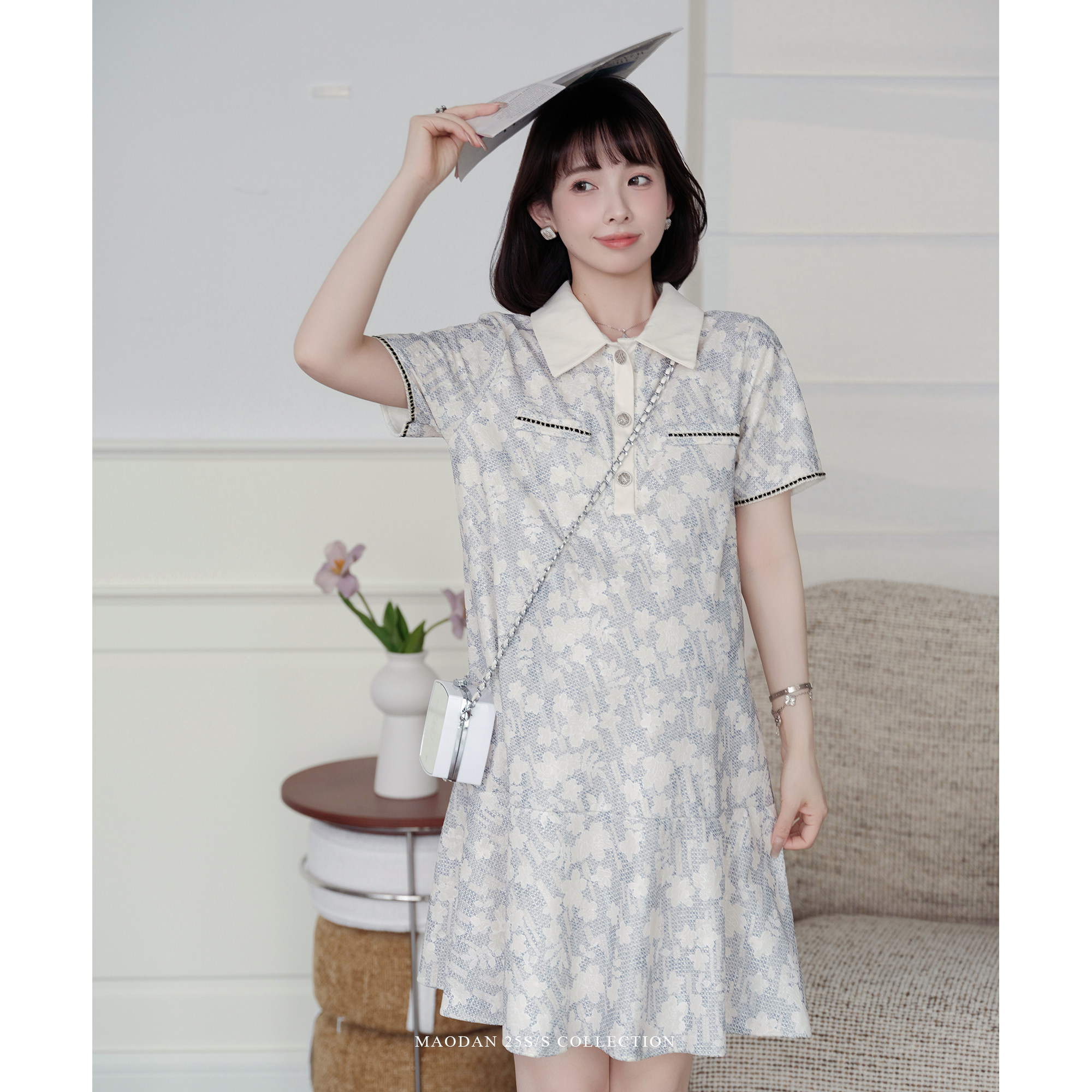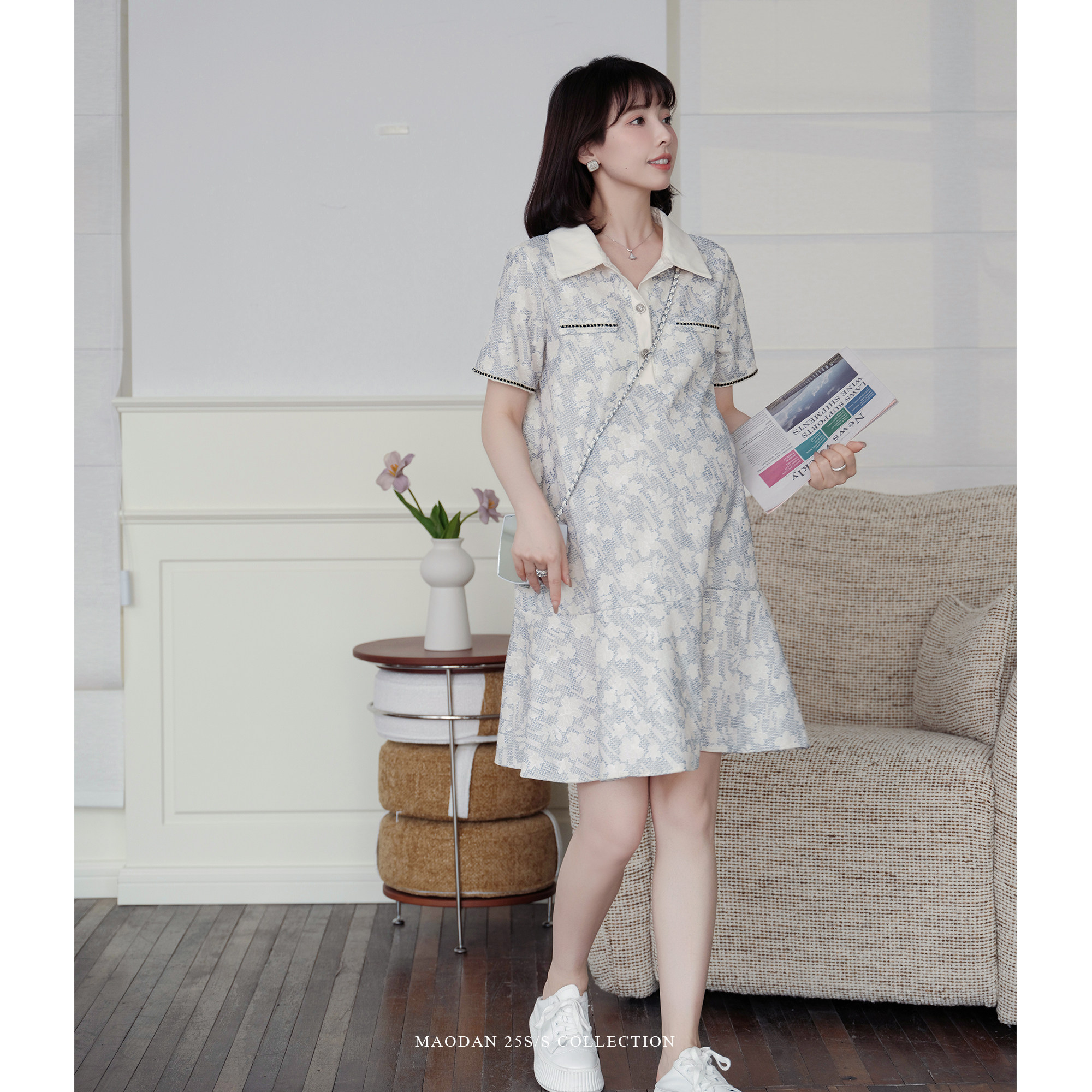 新款 猫单 孕期穿搭夏季 娜娜 可哺乳polo领碎花连衣裙 巴黎香露