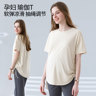 夏天宽松遮孕肚2025新款 孕妇上衣短袖 外穿孕妇装 薄款 t恤瑜伽夏季