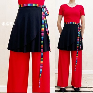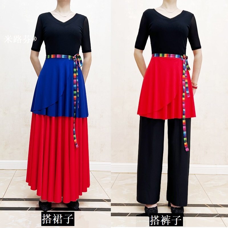 藏族舞蹈演出服大摆裙女艺考形体练功服广场舞半身裙民族舞蹈套装