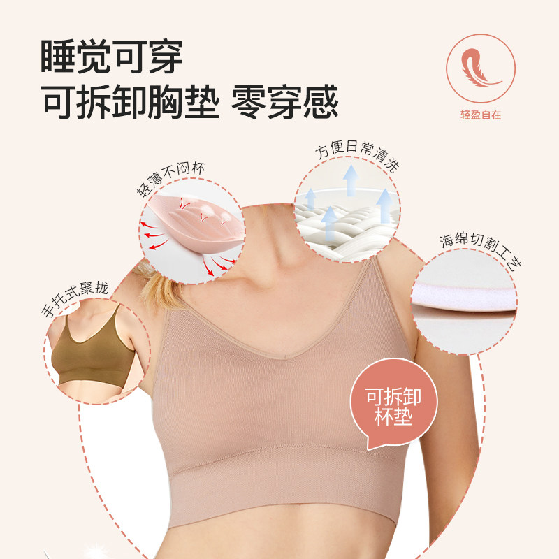 可拆卸舒适9014 内衣无痕女生无钢圈薄款 茜木无尺码 吊带文胸背心式