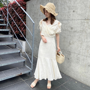 日系露肩气质温柔中长款 新款 连衣裙151740440C Claup22年夏季 Nice