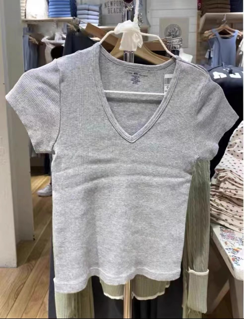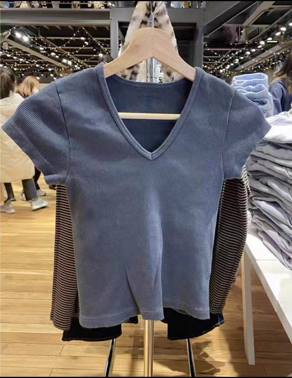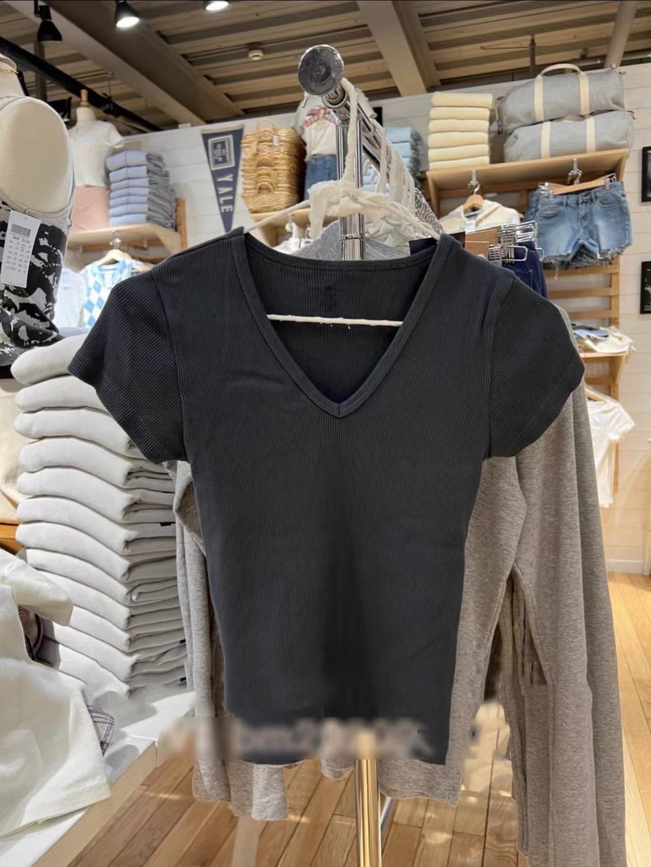 修身 bm短袖 纯棉V领上衣百搭t恤女 Girl官网虞书欣同款 Brandy