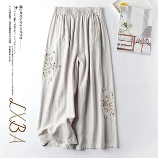棉麻休闲裤 百搭显瘦九分裤 女裤 复古民族风刺绣阔腿裤 薄款 2026夏季