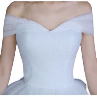 礼服 显瘦森系婚纱简约齐地法式 婚纱礼服一字肩V领婚纱女新款 夏季
