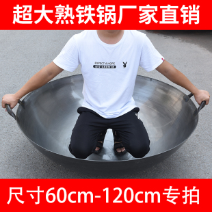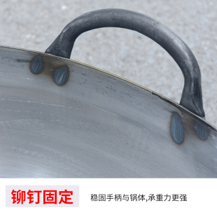 熟铁老式 铁锅 无涂层大铁锅双耳加厚家用锅燃气灶酒席商用厨师中式