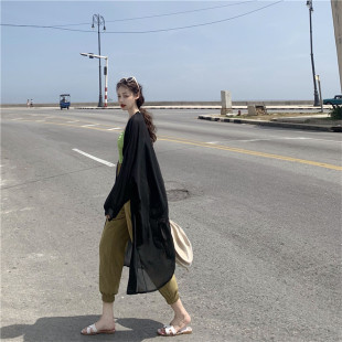 外套冰丝外搭海边防晒罩衫 开衫 中长款 牛油果绿雪纺防晒衣女夏薄款