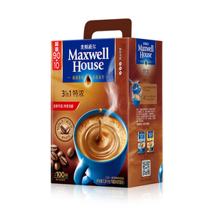 麦斯威尔咖啡特浓三合一速溶咖啡粉1300g经典 原味咖啡粉100条盒装